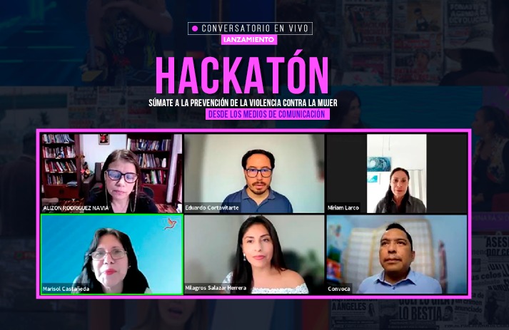 El 08 de marzo el Observatorio de Medios, iniciativa de Calandria y del CONCORTV, realizó junto a Convoca, un conversatorio virtual por el lanzamiento de la Hackaton titulada “Súmate a la prevención de la violencia contra la mujer desde los medios”. Este evento tuvo por objetivo visibilizar el tratamiento de los casos sobre violencia contra la mujer y el rol de los medios y de la ciudadanía para prevenir esta problemática.